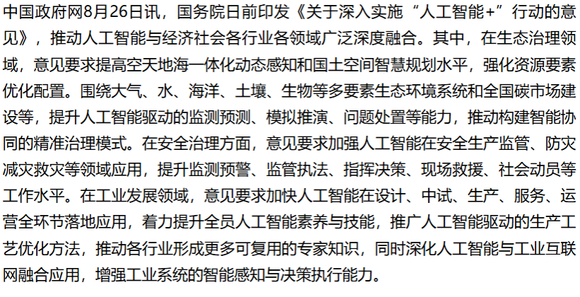 国务院:深入实施“人工智能+”,加强在安全生产